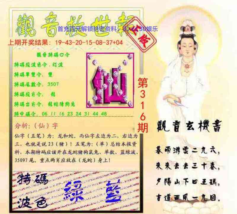 | 316期:五段中特『13456段』开:马24中 |